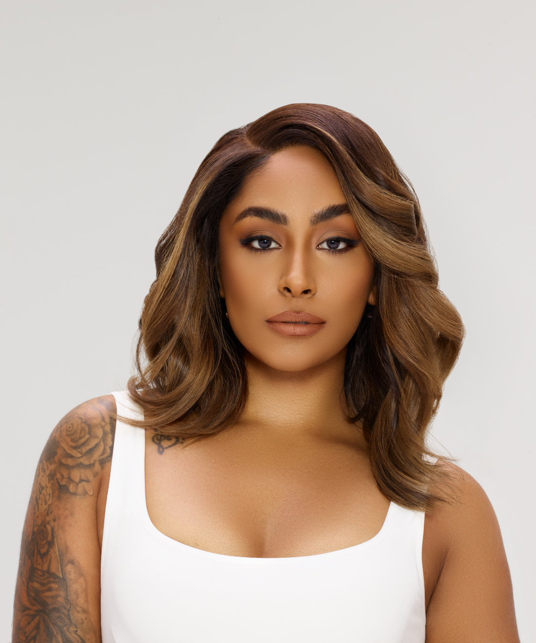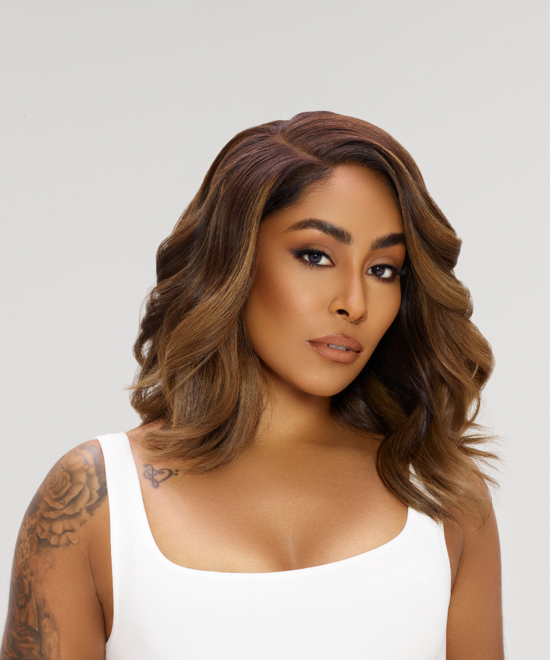 Fall in love with our captivating asymmetrical lob wig, reminiscent of freshly baked pecan pie. The deep brown base harmonizes with pecan blonde highlights and painted tips, evoking the warmth of this beloved dessert. Embrace the romance and charm of this blend for an irresistible look that's as sweet as it is bold.