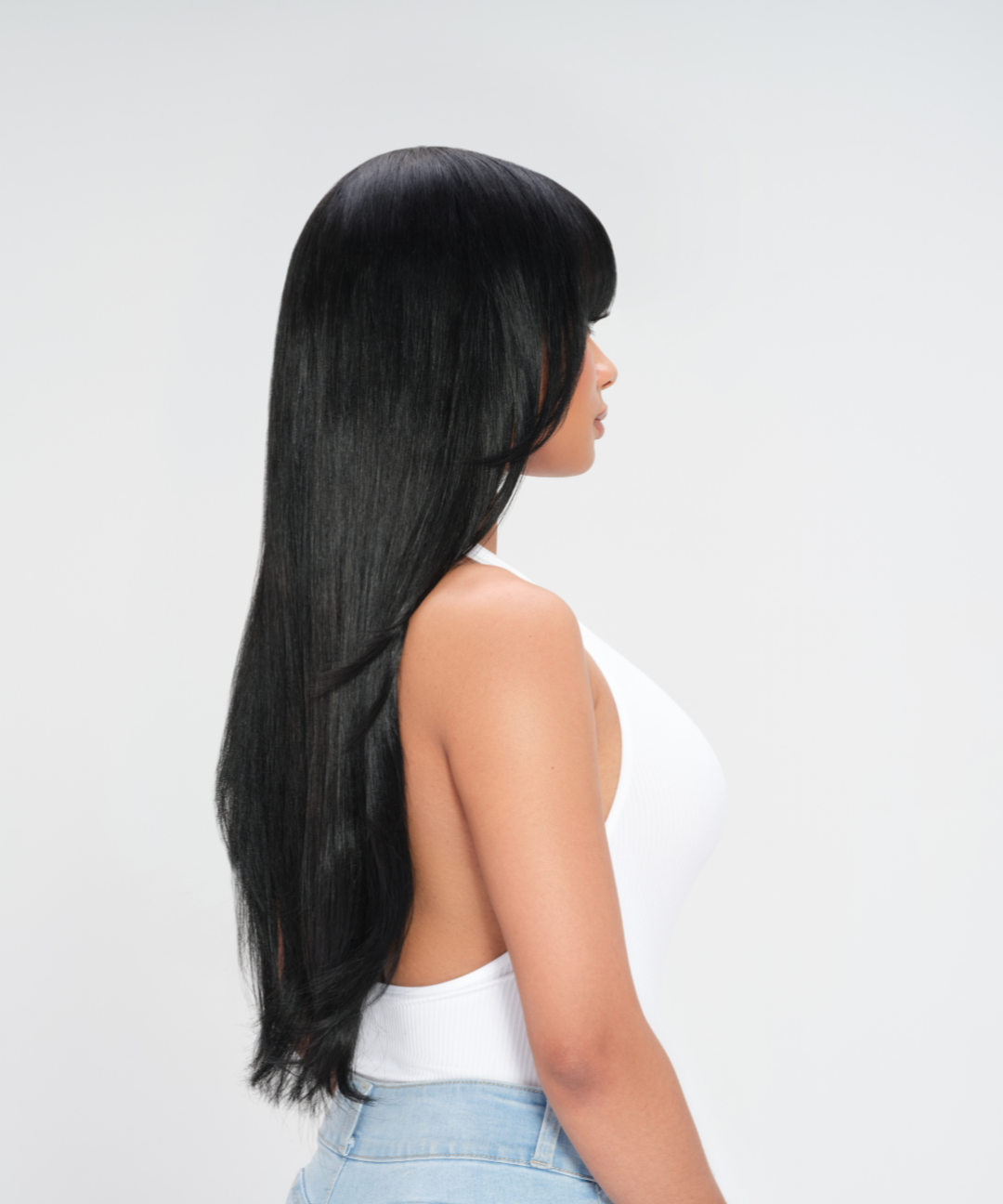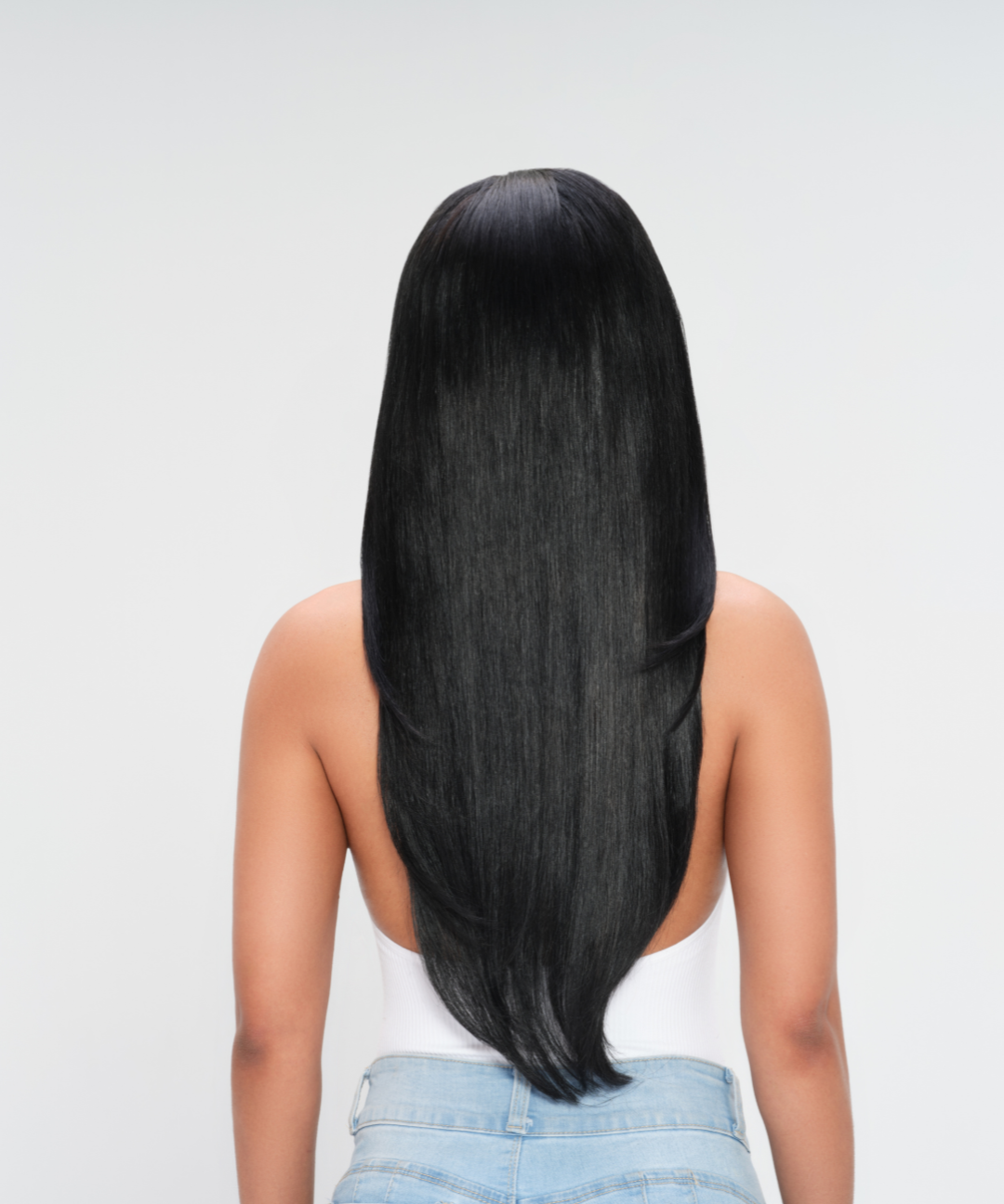 Made you look! This mesmerizing look showcases bumped, face-framing layers, offering a touch of sophistication and allure. Whether you're aiming for a sleek and polished look or a hint of edgy glamour, our Midnight Noir wig is the perfect choice.