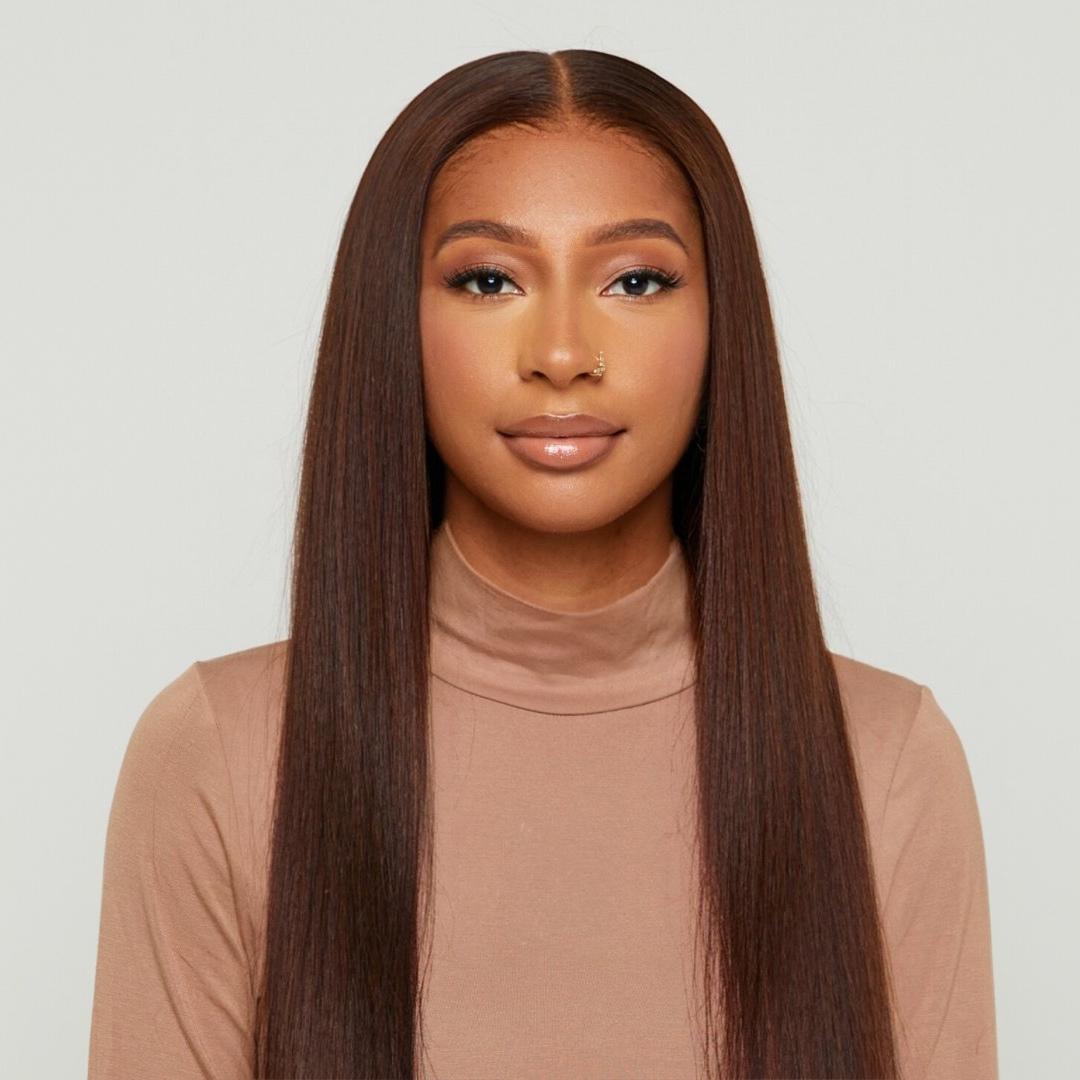 Very Straight HD Lace Wig with a Chocolate Brown color service in 14 inches